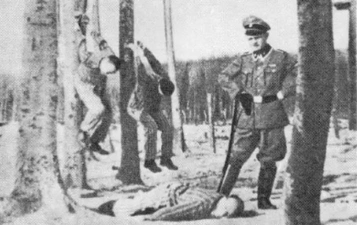 I’m no German uniform expert, but I also question the open uniform jacket of the “executioner” and the fact that he is seemingly not wearing a shirt under it. I’ve seen several hundred photos of German military in uniform out in the field, and this is the only one I’ve seen where a soldier has it unbuttoned like that with nothing underneath. Meanwhile every other soldier of the photo at best has the typical top button unbuttoned.